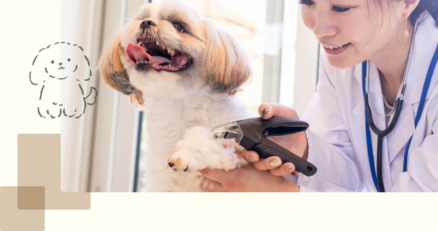当院では獣医師のサポートのもと、健康な子はもちろん、高齢や持病持ちの子でも安心してご利用いただけるように、わんちゃんねこちゃんに負担の少ないトリミングをおこなっております。